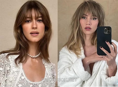Старые челки в небрежном стиле были гуще и имели более выраженный, ровный срез, но современная версия выглядит мягче, менее искусственно и более естественно. Вариантов укладки также стало больше: можно создать стильный, непринужденный образ или добиться более сдержанной и ухоженной укладки с помощью фена.