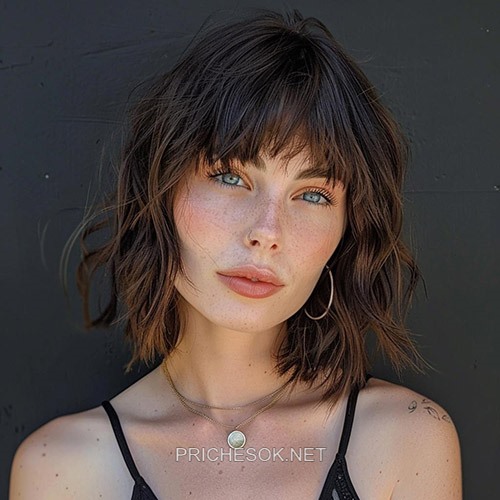 Короткая текстурированная челка прекрасно сочетается с непринужденным бобом. Этот образ идеально подходит тем, кто не боится экспериментировать и выделяться из толпы.