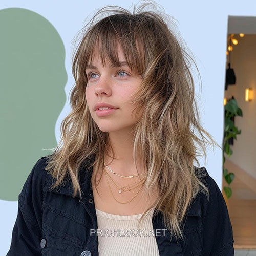 Этот образ подходит тем, кто хочет выглядеть свежо и молодо. Рваная челка добавляет игривости, а мягкие слои создают движение и объем. Идеально подходит для создания непринужденного, но стильного образа.