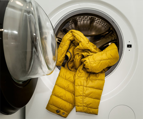 Куртки, пальто и другие верхние одежды с синтепоновыми наполнителями требуют особого внимания. Синтепон в таких вещах может сбиваться в больших количествах, что приведет к снижению теплоизоляционных свойств и внешнему виду одежды.