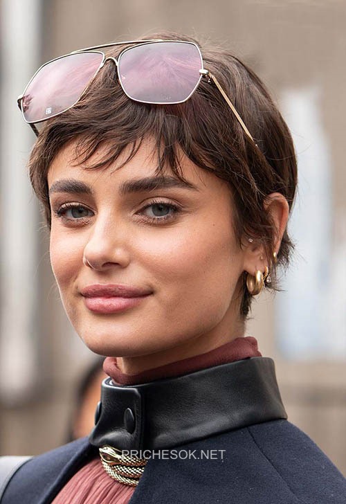 В третьей стрижке, ставшей культовой благодаря супермодели Тейлор Хилл, все вращается вокруг объема и текстуры. Представьте себе короткую прическу с естественными локонами, оставленными свободно двигаться, длинной челкой, мягко касающейся лба, и едва заметными слоями, которые еще больше подчеркивают локоны. В результате получается короткая кудрявая стрижка, непринужденная, но невероятно шикарная.